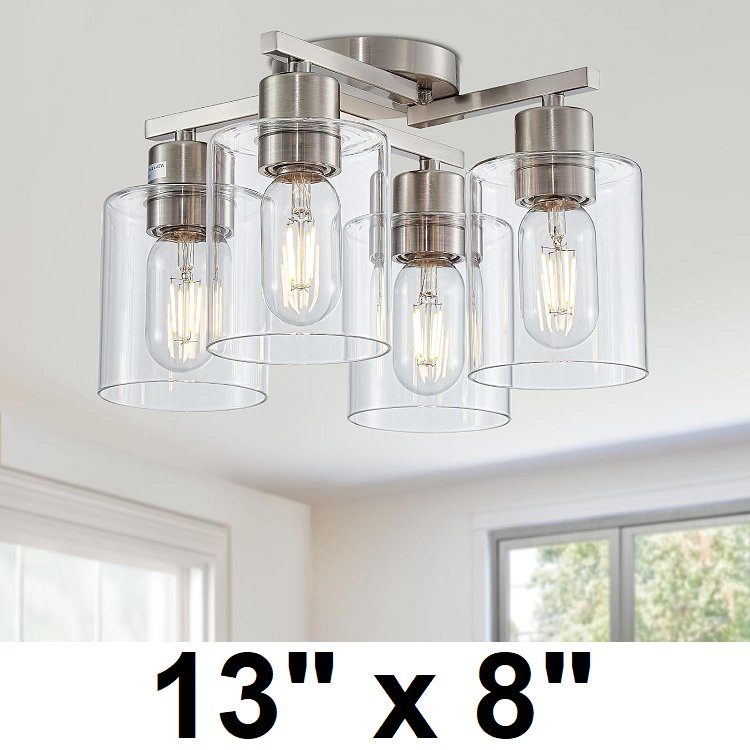 DIDUIO 4 Light Semi Flush Mount modern Ceiling Light - 13" x 8" - e26 bulb base - Brushed Nickel (model: C0132004)