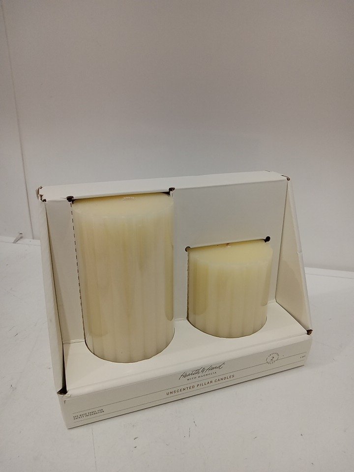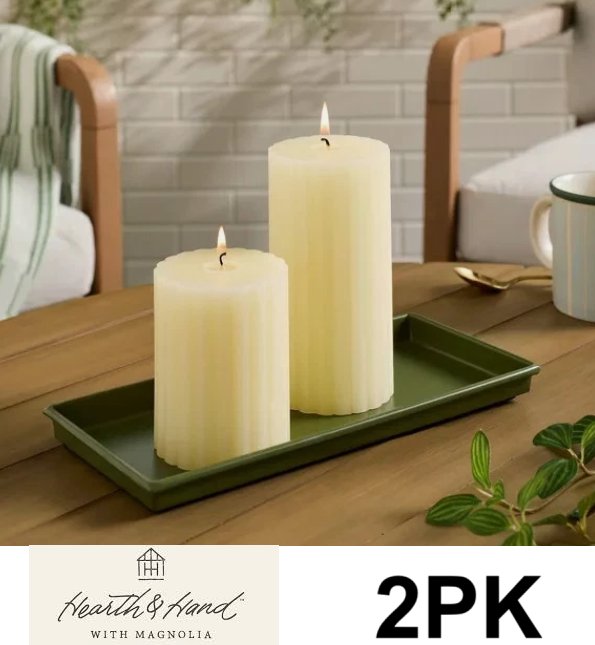 2PK Hearth & Hand Magnolia Vertical Ribbed Pillar Candles - 3"x3" & 3"x6" - Ivory