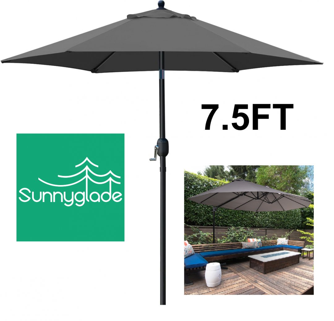 SUNNYGLADE Patio Umbrella Outdoor Table Market Umbrella - 7.5FT - GRAY