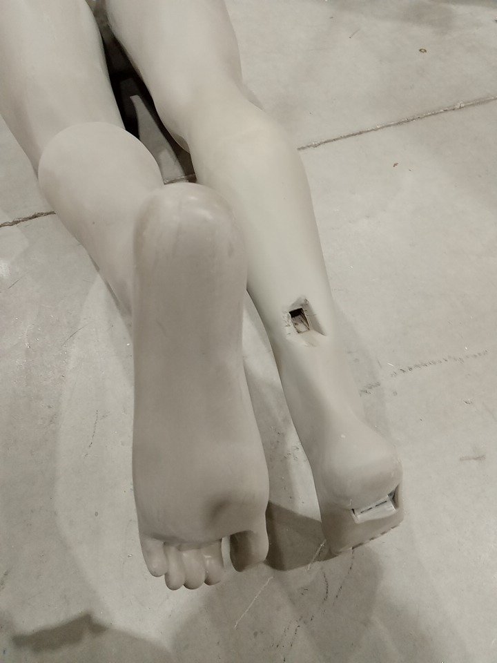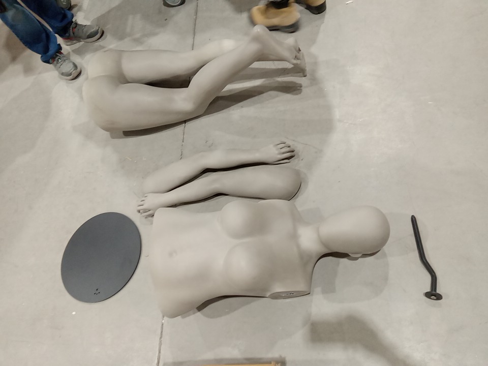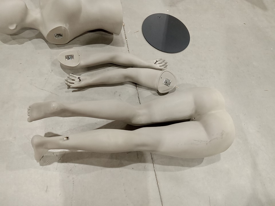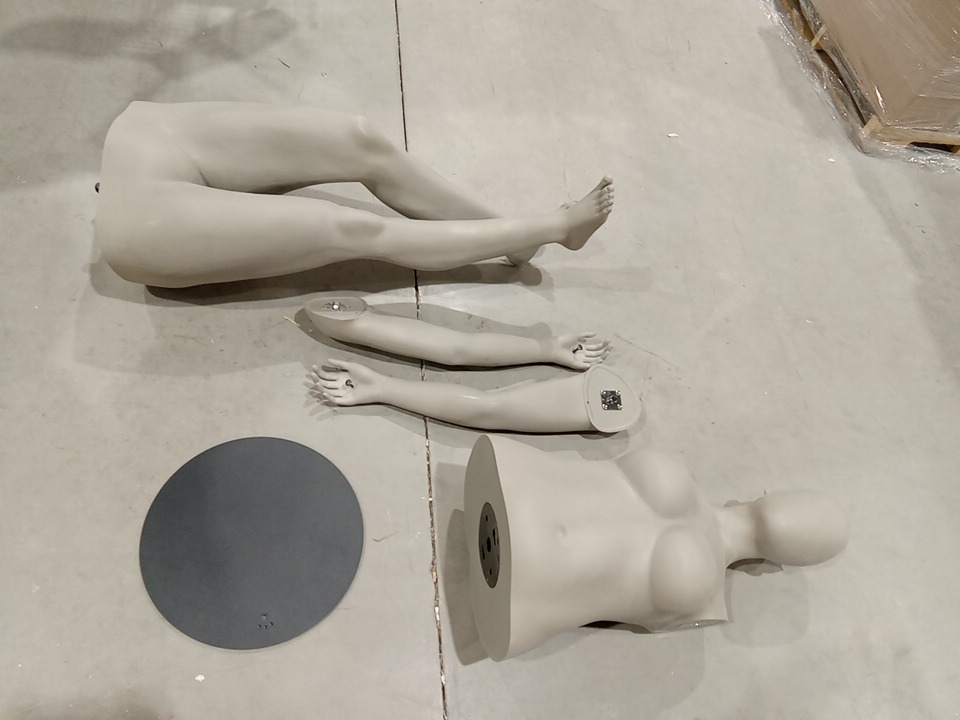 their are some scuffs, stains, and blemishes on this item from shipping and handling/ prior light use. we have found no manual for this item meaning we are unable to confirm that all parts are present, however it does seem that all the mannequin pieces are present, their are fraying marks on the assembly points indicating this item has been previously assembled. see photos below. keep in mind that since we were not given model information we do not have dimensions for this item meaning we had to take measurements ourselves, dimensions listed may not be 100% accurate due to this . see photos