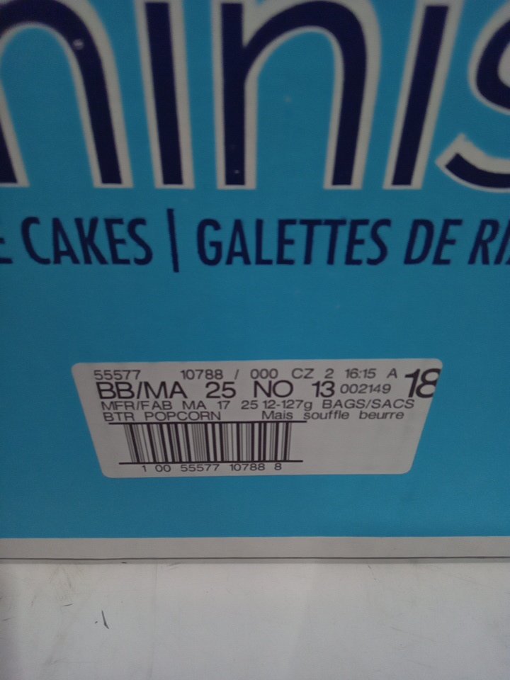 12pk **recently expired **quaker crispy minis gluten free brown rice cakes - butter popcorn - 127g/each