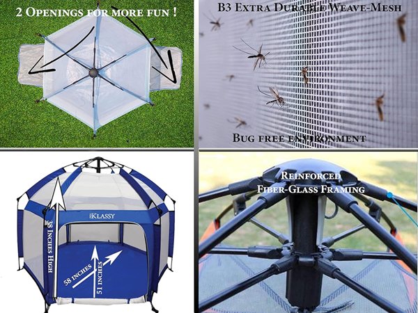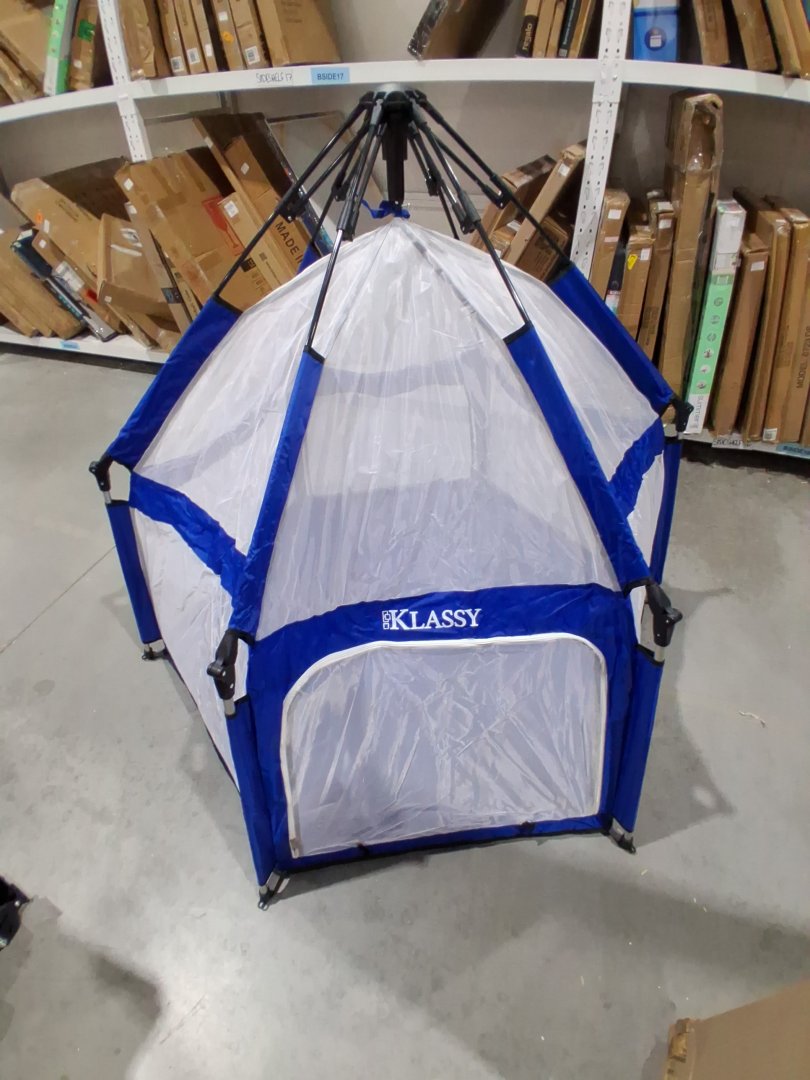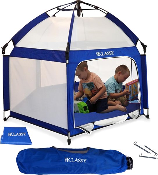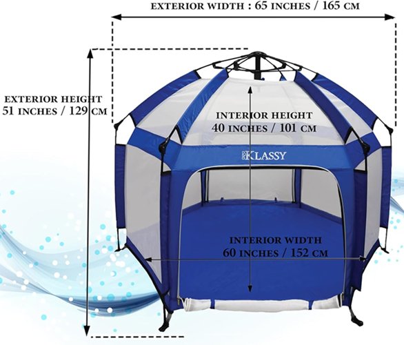 Klassy Premium quality Indoor and Outdoor foldable Baby Playpen with Shade cover/Canopy and carrying bag - blue/white (model: KL0101)