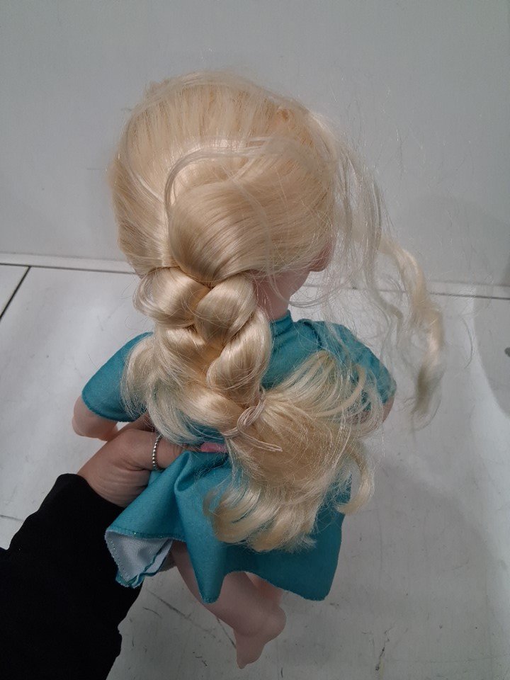 doll appears new, but was shipped with out packaging and her hair has slightly unraveled from her braid.