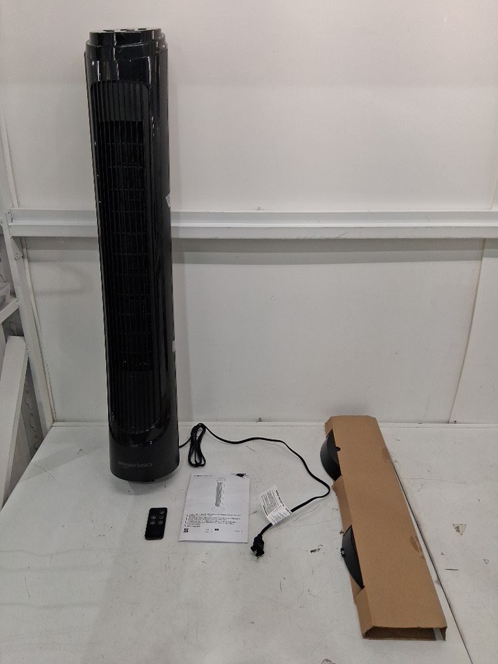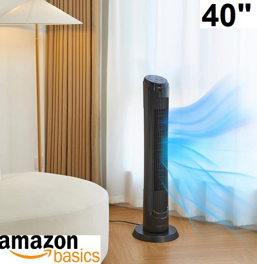 amazon basics 70-degree oscillating digital tower fan with 4 speeds, 3 modes and timer up to 15 hours - 50w - 40" - black (model: dc2021)