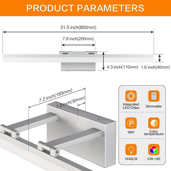solfart dimmable modern led vanity light - 3000k/4500k/6000k - silver (model: s8200-610mm-silver)