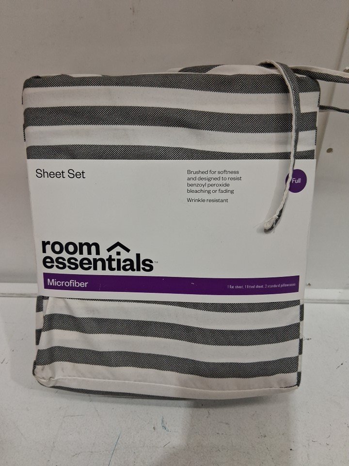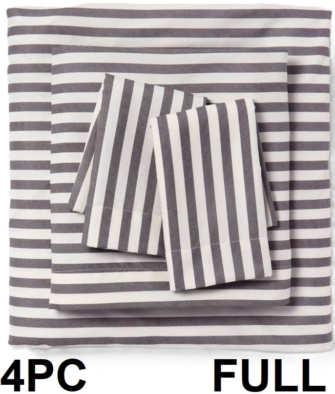 4PC ROOM ESSENTIALS STRIPED MICROFIBER BED SHEET SET - FULL - WHITE/GREY