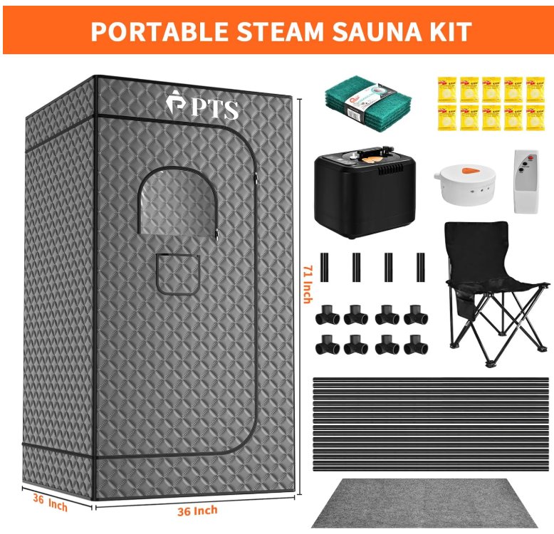 PTS Portable Steam Sauna Box Sauna Tent - 3L - 110V Steam Generator - 36" x 36"x 71" (model- 120)