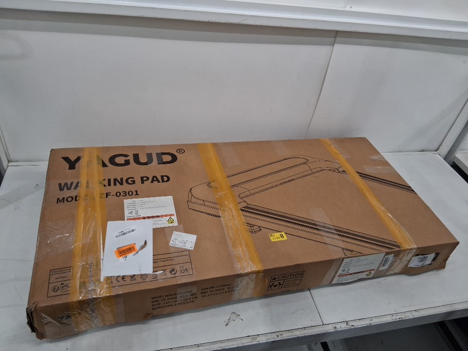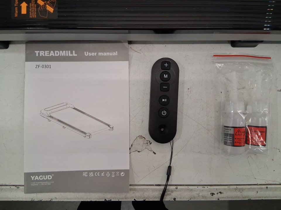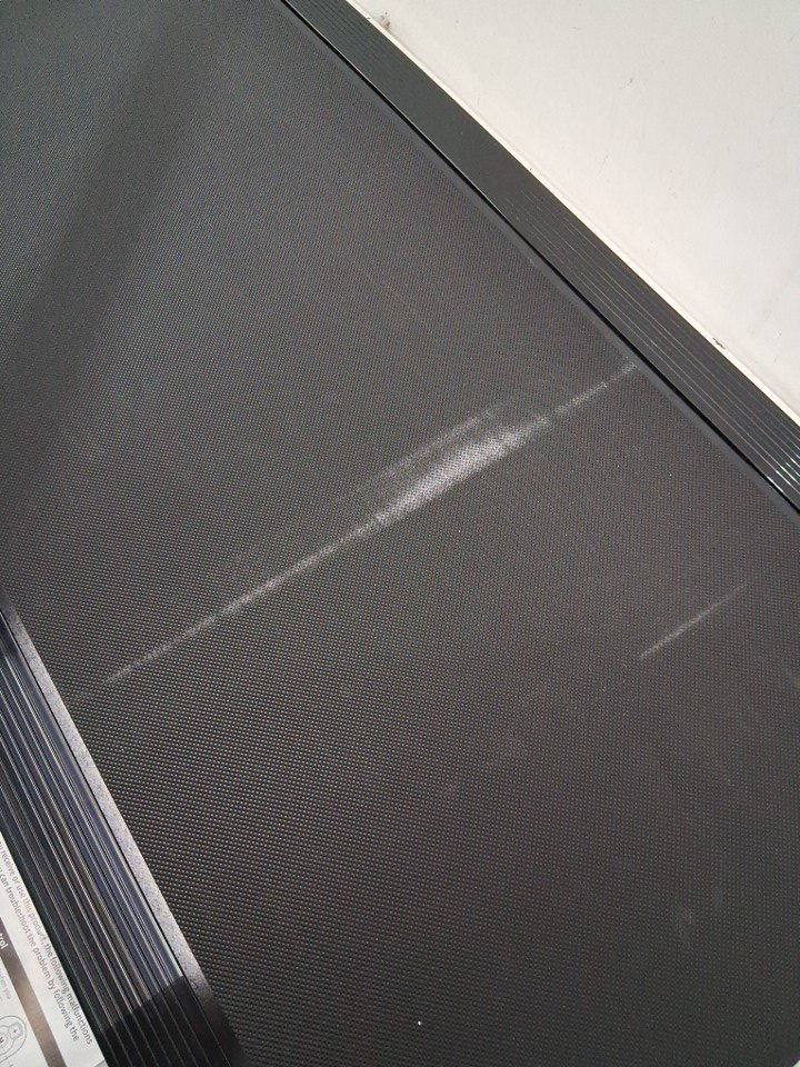 White markings on walking belt likely caused by Styrofoam packaging. (See photos)