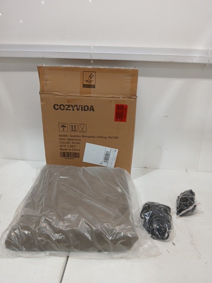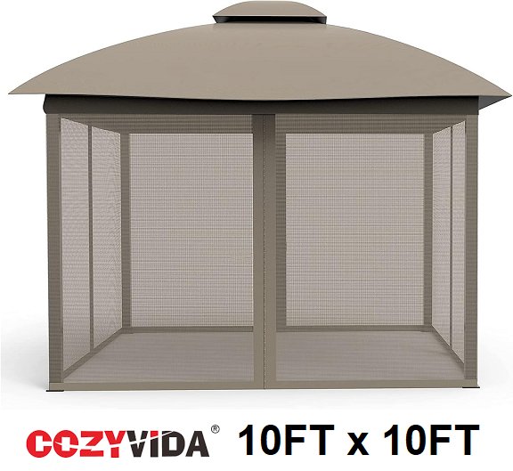COZYVIDA GAZEBO MOSQUITO NETTING SCREEN, 4 PANELS, UNIVERSAL REPLACEMENT - 10FT X 10FT - khaki brown - (model: MKH1010)