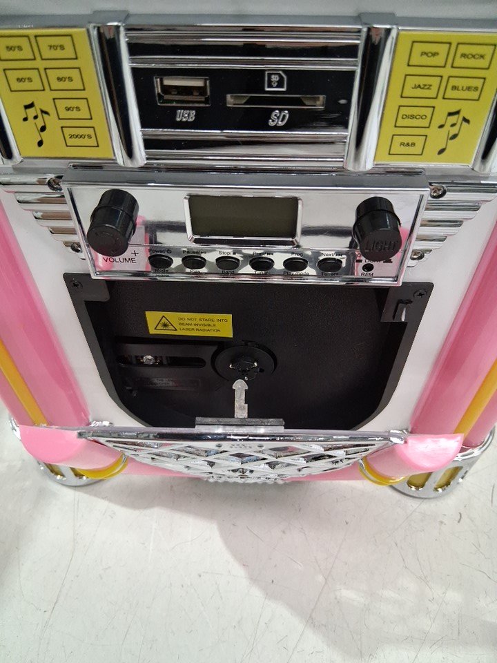 There are some scuff marks on the jukebox indicating previous use (see photos) Tested for power