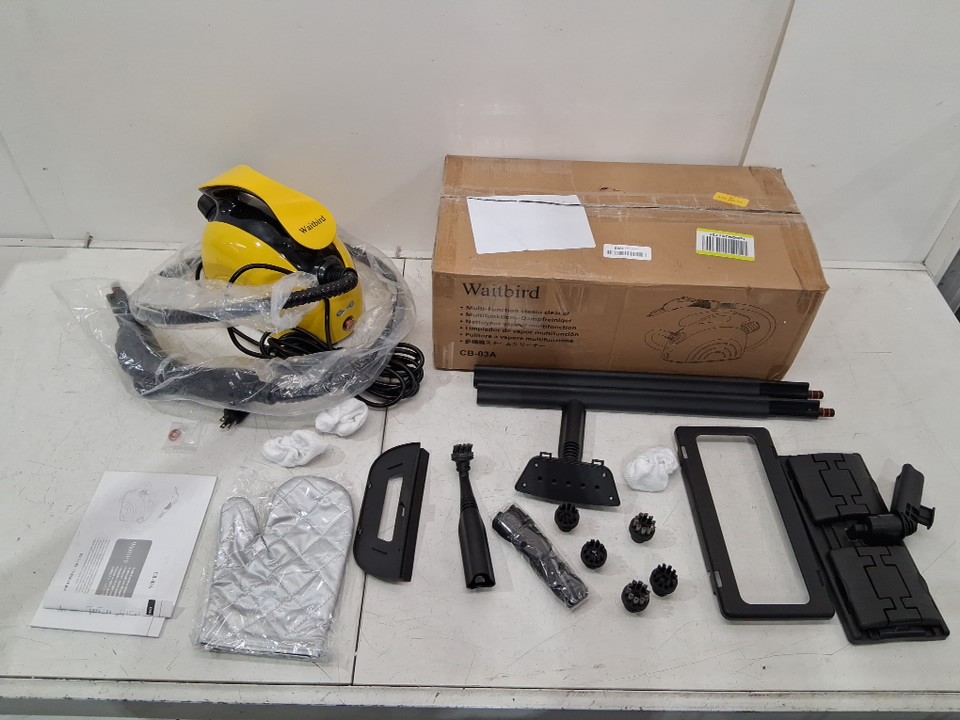 waitbird multi-purpose steam cleaner for home use - 110-120v - 1500w - 38oz tank - black/yellow (model: cb-03a)