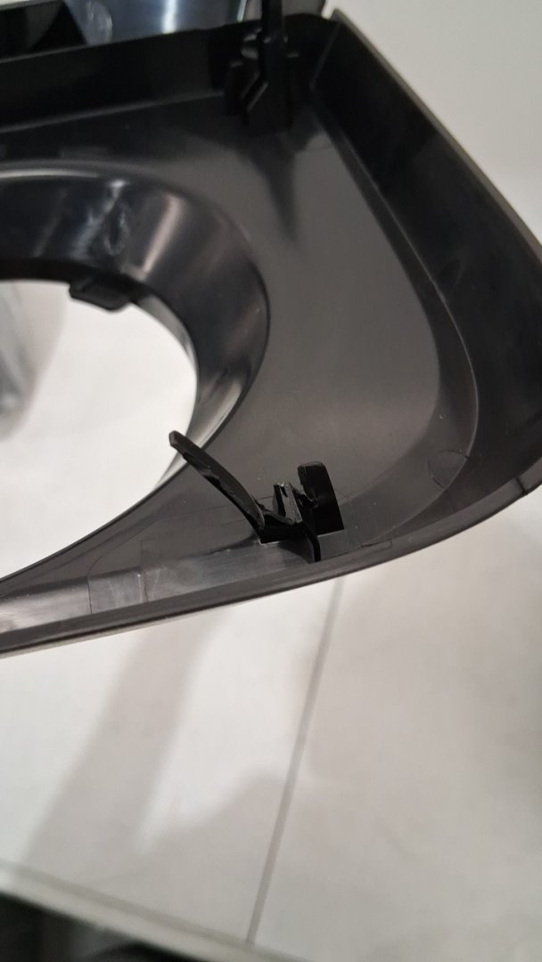 one of the plastic covers has multiple clips broken off, may not properly reattach, there is dirt on the bottom of the unit, indicating previous use