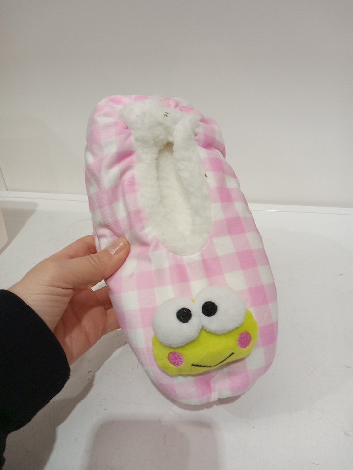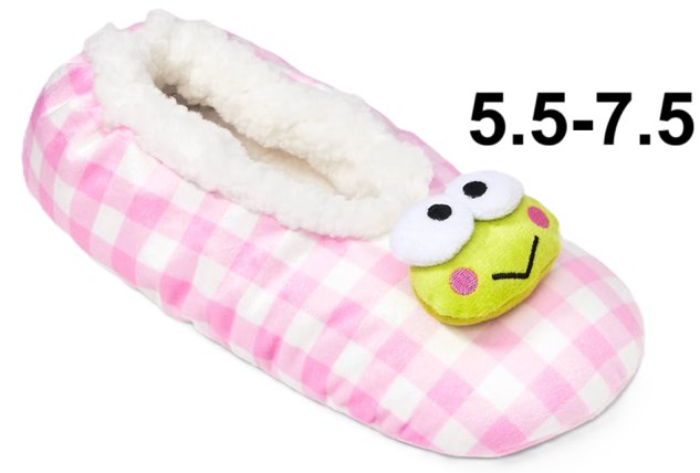 WOMEN'S Sanrio Hello Kitty Keroppi Gingham Plaid Slipper Socks With Grippers - 5.5-7.5 - PINK