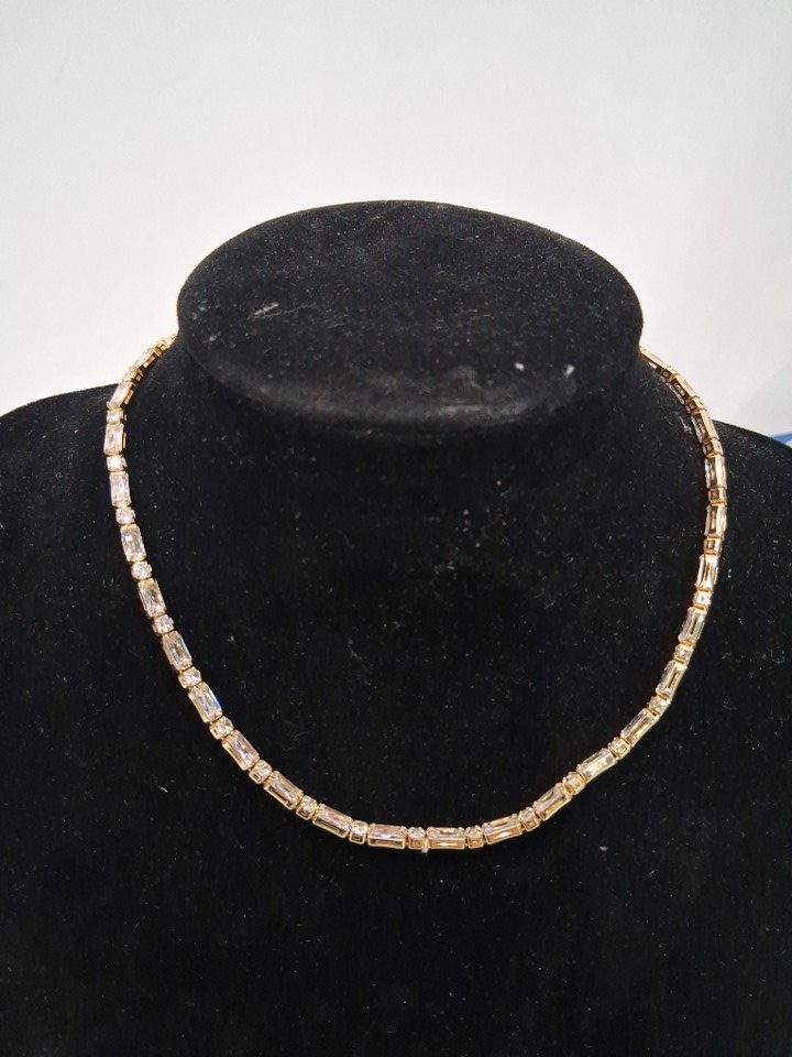 WOMENS JOTCA TENNIS SIMULATED DIAMOND CHAIN NECKLACE - 14" - GOLD PLATED