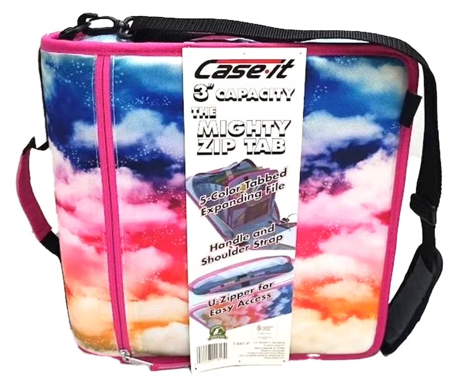 CASE-IT THE MIGHTY ZIP TAB EXPANDING BINDER - 3" CAPACITY - MULTICOLORED