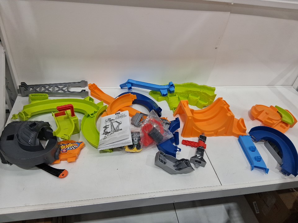 fisher-price little people hot wheels toddler spiral stunt speedway race track playset - 18+ months - multi colour (model: jdd72)