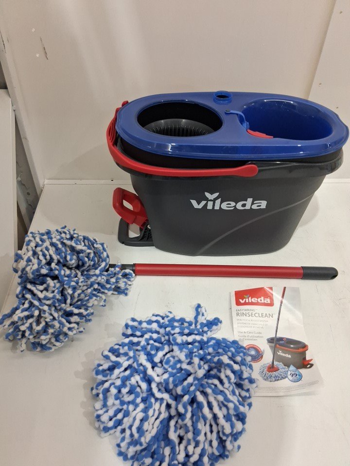 Please See Photos: - Some minor debris on one of the mop heads and some minor water stains inside the tank suggest light previous use
