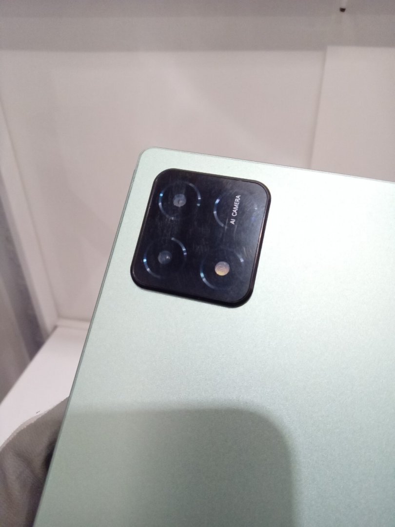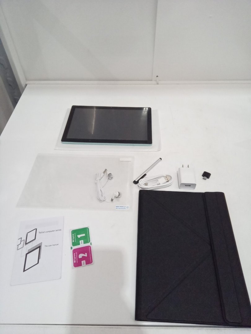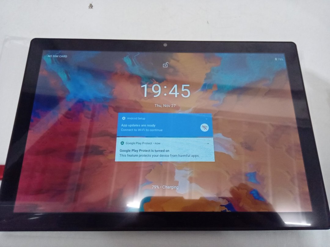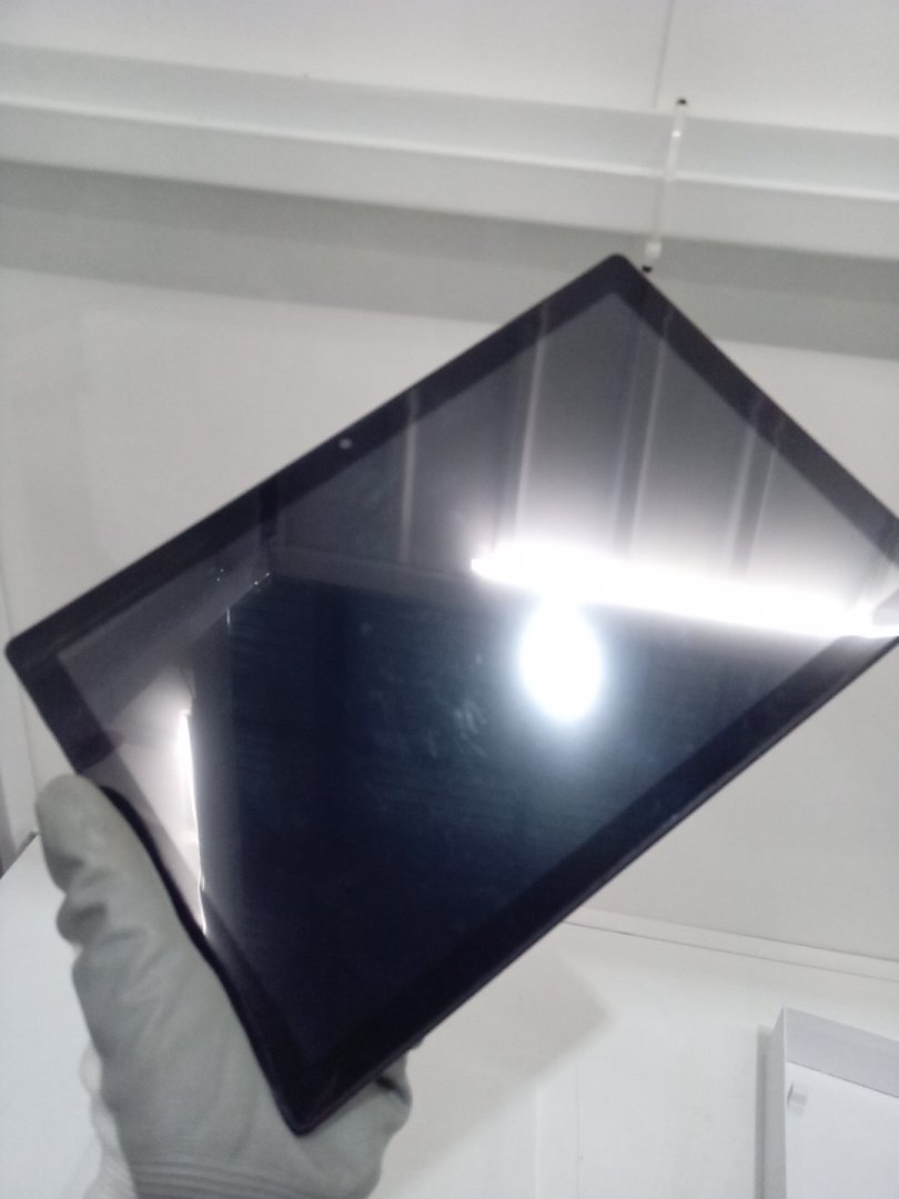 Light scuffs on the screen and by the camera, and markings on the back including a small dent from prior use. Set is missing the wireless mouse accessory but is not required for use. Please see photos.