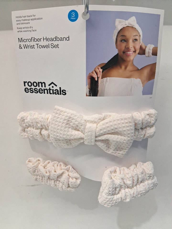 3PC ROOM ESSENTIALS MICROFIBER HEADBAND AND WRIST SET - WHITE