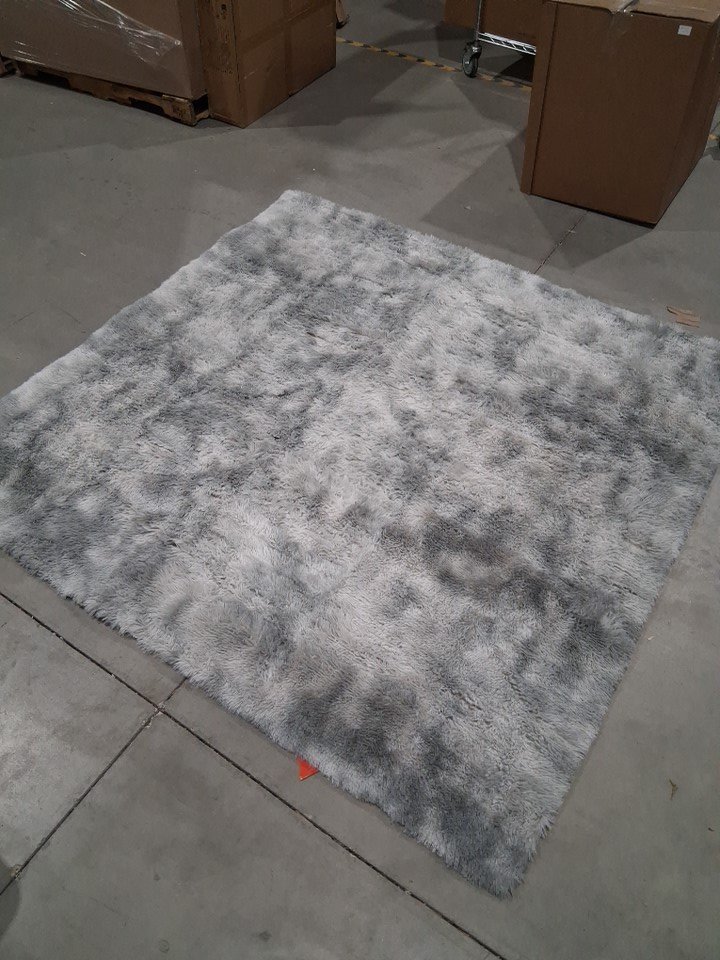 fluffy soft carpet/throw rug with ant-sip bottom and under pad - 6.3ftx6ft - Lightgrey/white