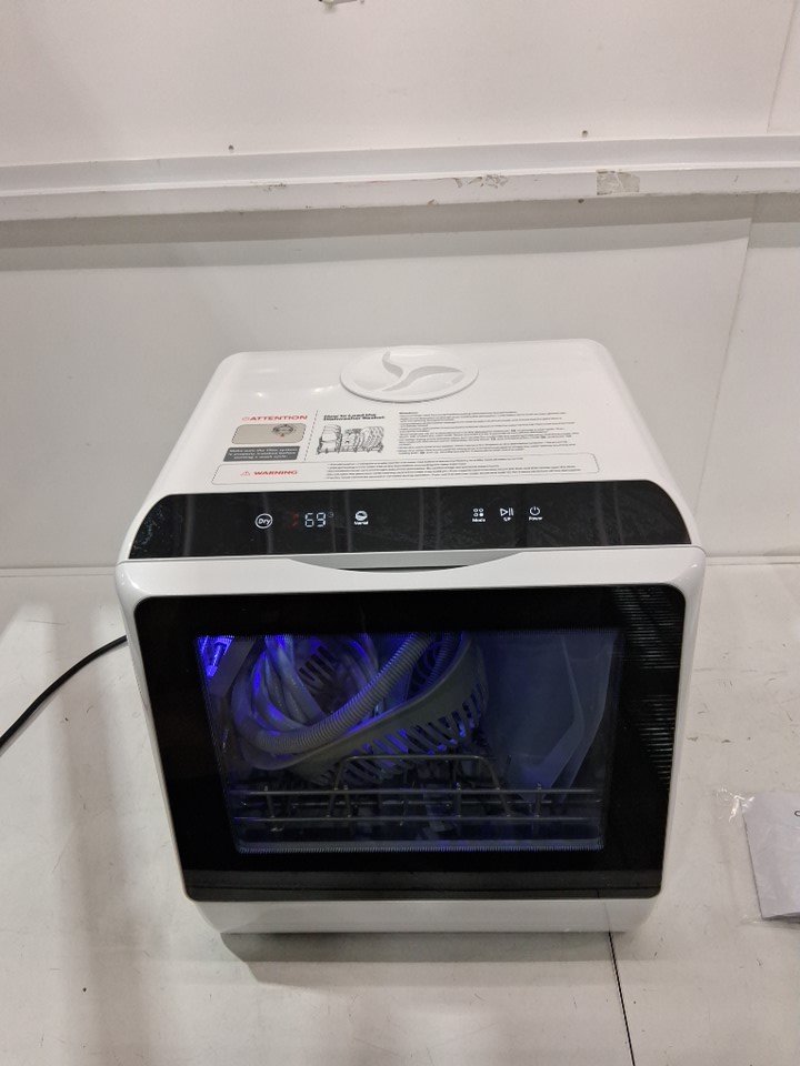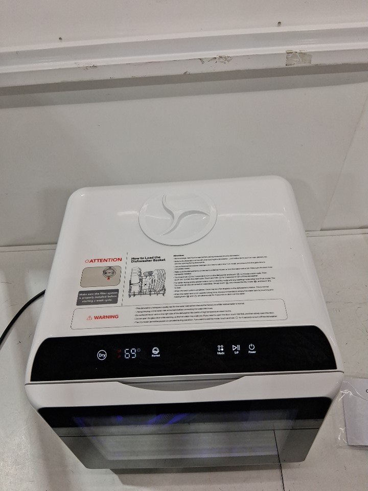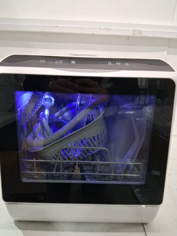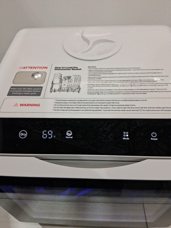 it has some stains on the display, and it is wet from inside the dishwasher due to previous use. (see photos)