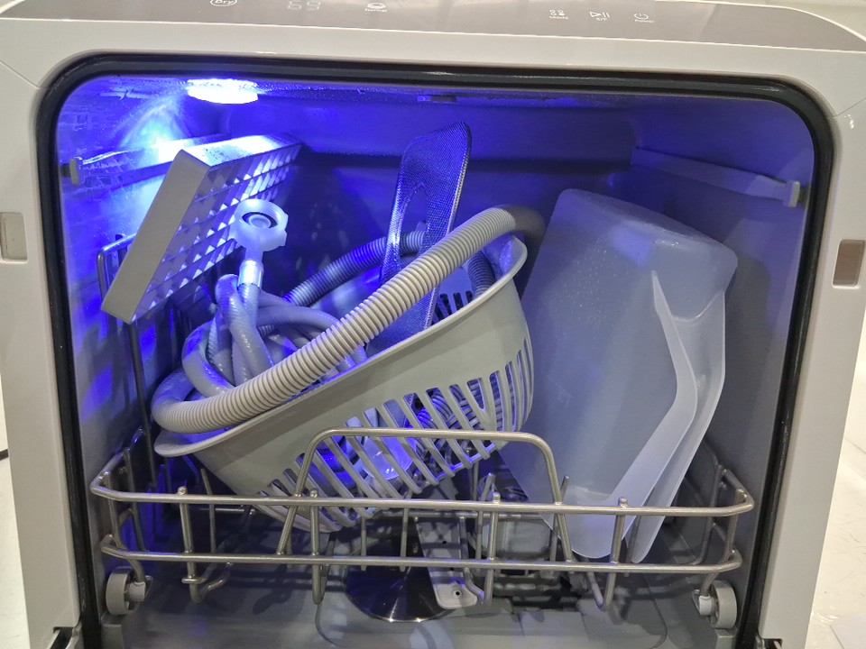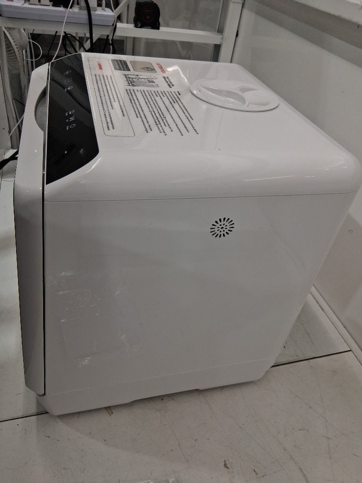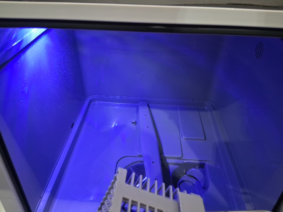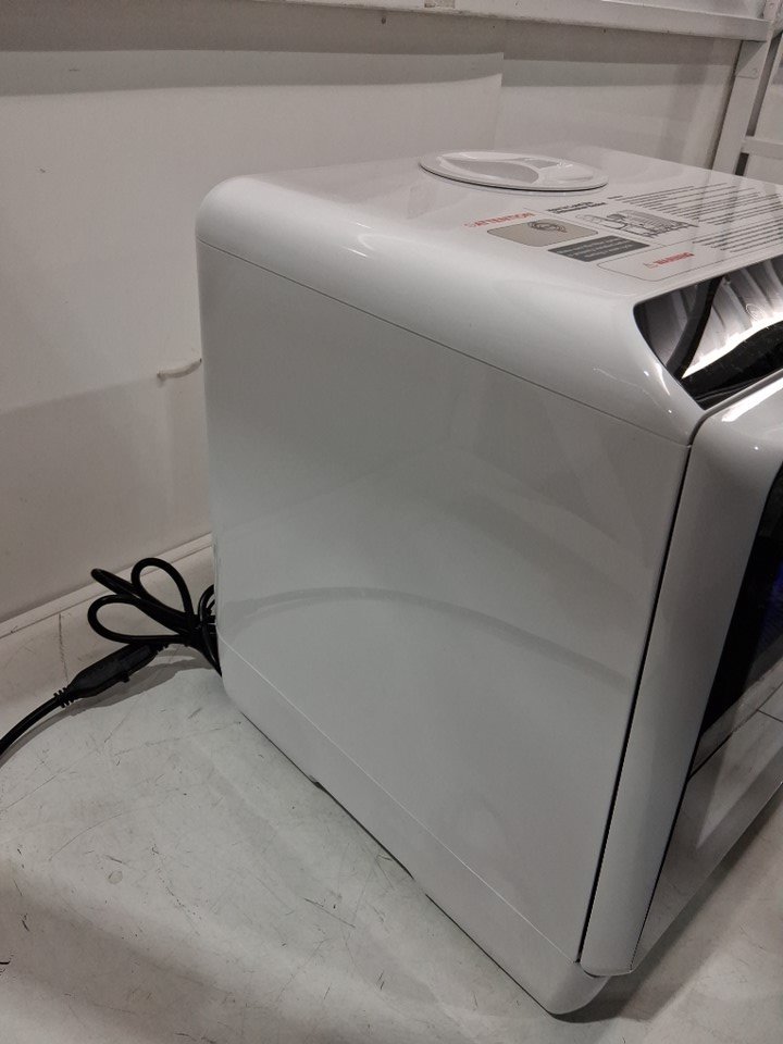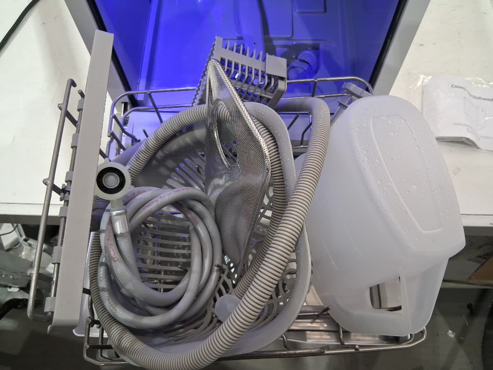 it has some stains on the display, and it is wet from inside the dishwasher due to previous use. (see photos)