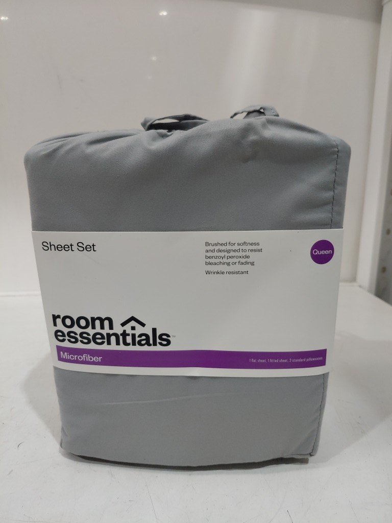 4pc room essentials Microfiber Sheet Set - queen - GREY