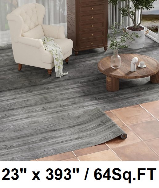 oxdigi peel & stick vinyl flooring roll - 23" x 393" /65 Sq.FT - dark grey