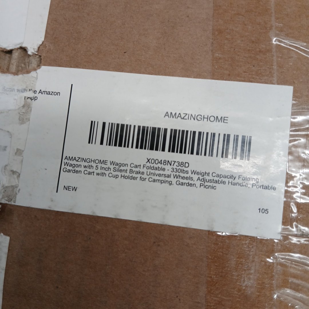 amazinghome foldable portable wagon cart with cup holders - 5" WHEELS - 330lbs cap - 27.5" x 18" - 100L - grey/black