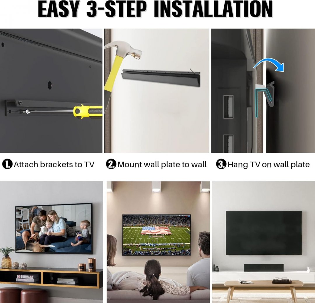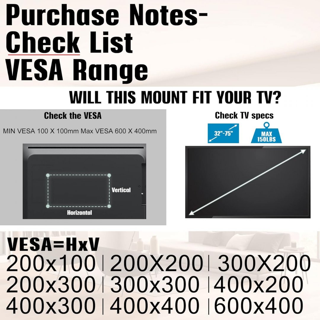 2 aentgiu heavy-duty studless tv wall mount kit for 32" - 75" TV's - 150LB max - black