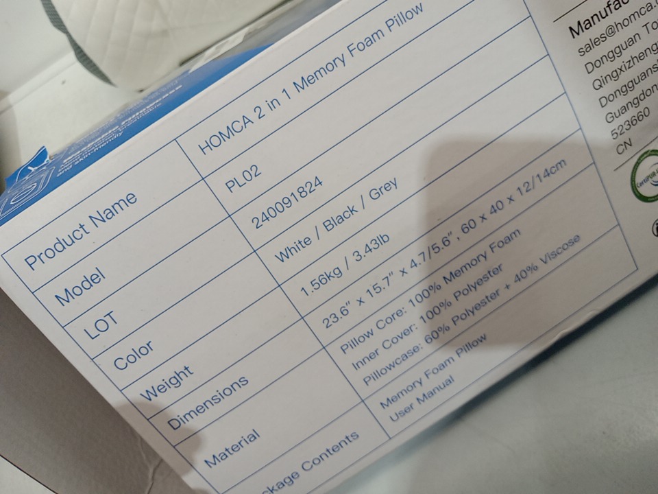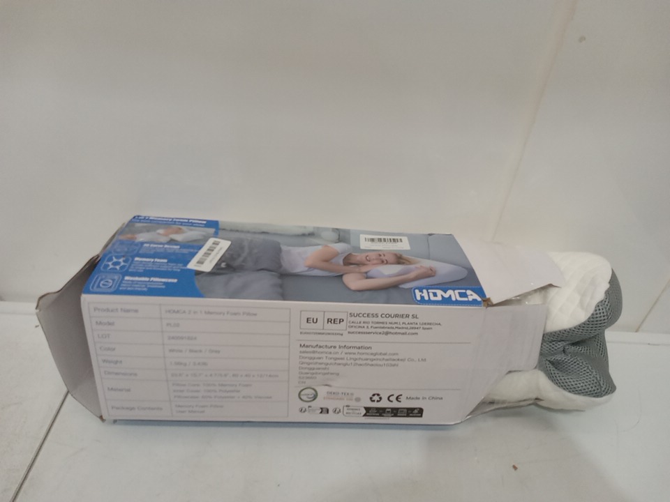HOMCA 2-IN-1 Ergonomic Memory Foam Pillow for Side Back Stomach Sleepers - 15.7"x 23.6" - White/Grey - (model: PL02)