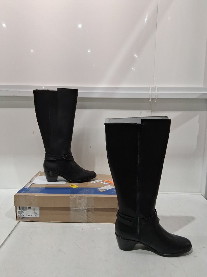 women's Clarks Emily 2 Dream leather Knee High long Boot - size 10 - black (style - 26179601)