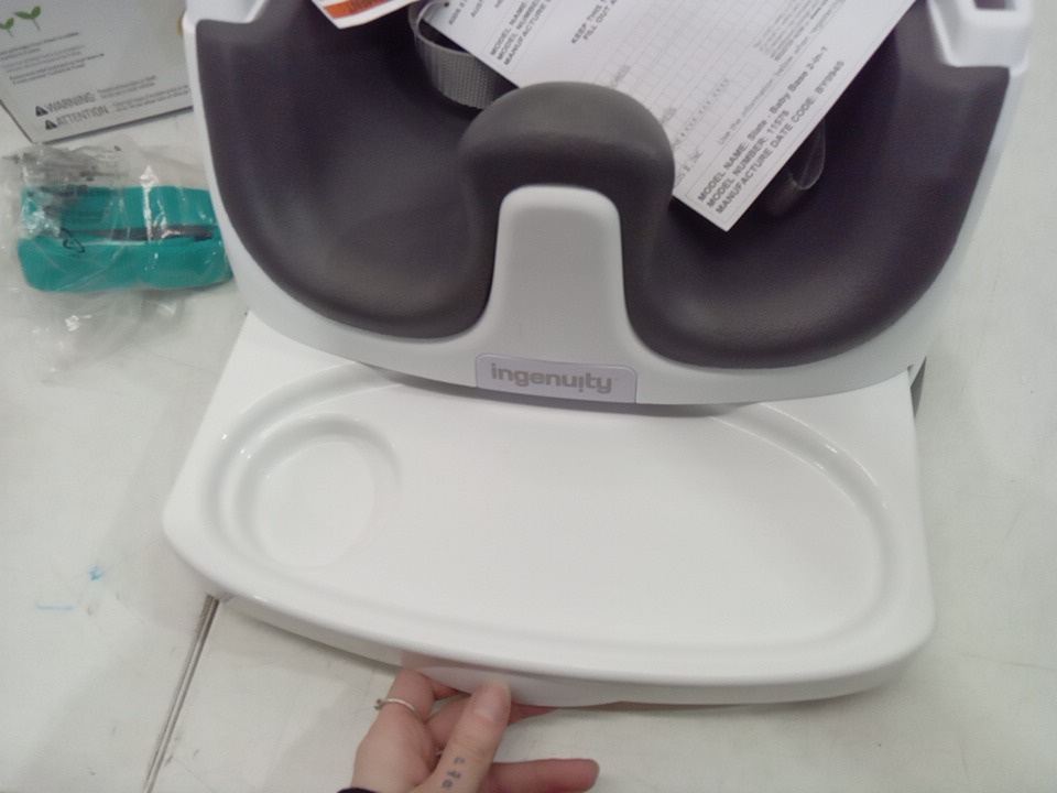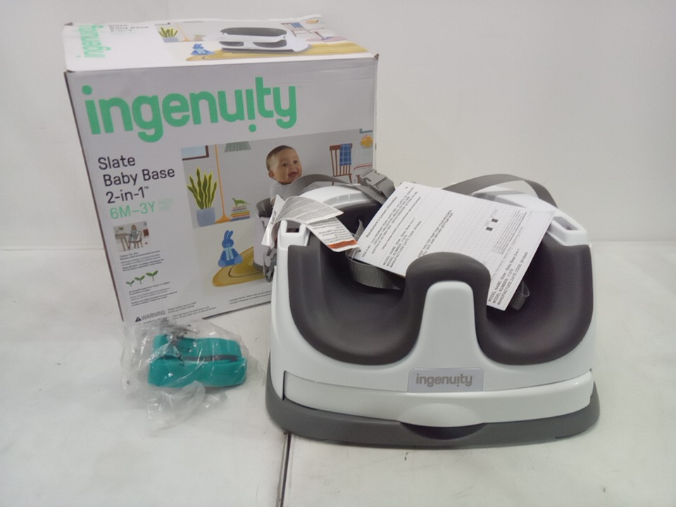 INGENUITY BABY BASE 2-IN-1 BOOSTER SEAT WITH FOOD & DRINK TRAY - 50LBS CAPACITY - WHITE/SLATE GREY (MODEL: 11576)