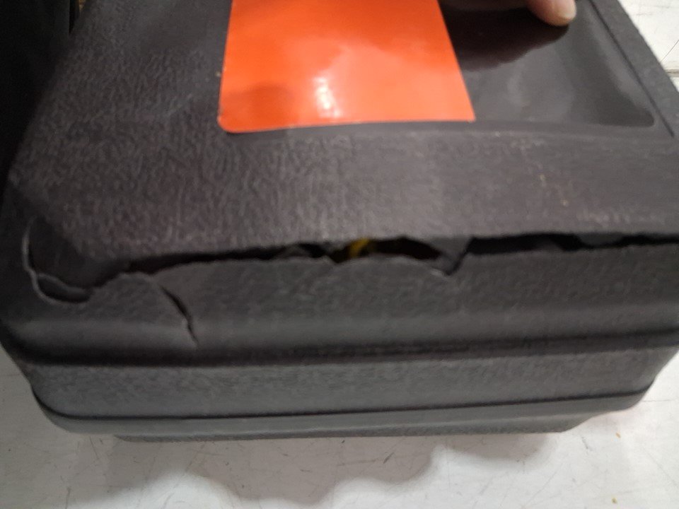 item has some scratching and scuff marks indicating prior use carry case is cracked / damaged