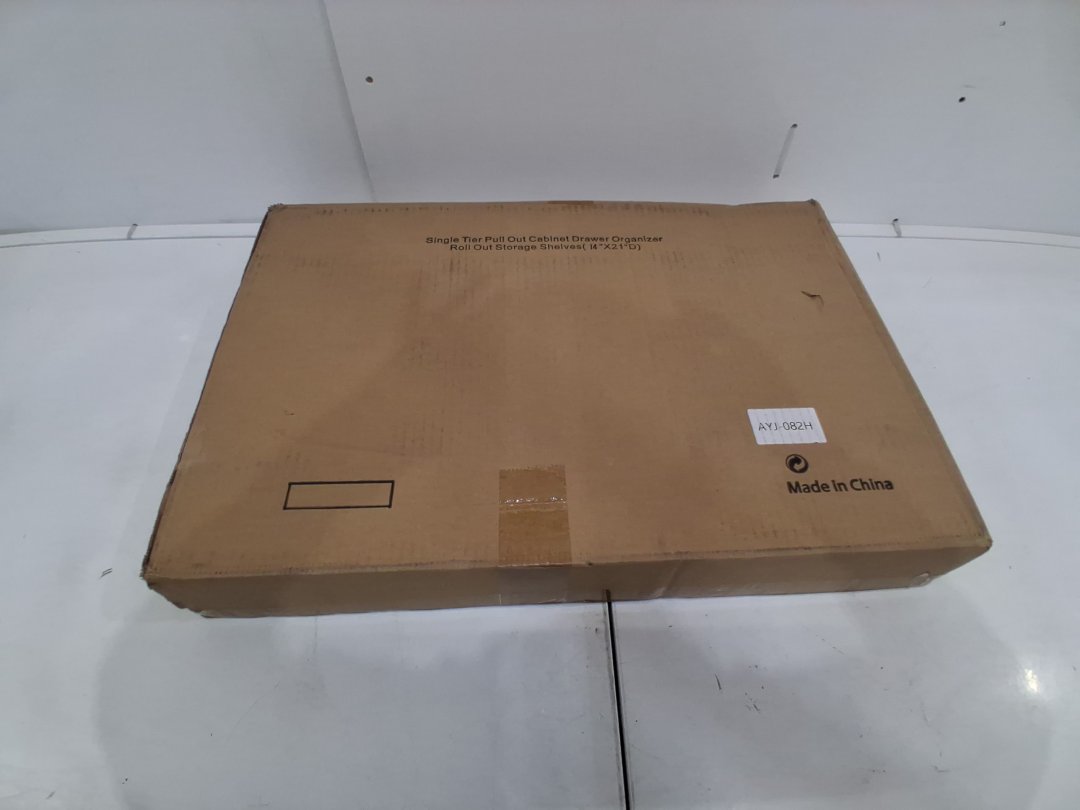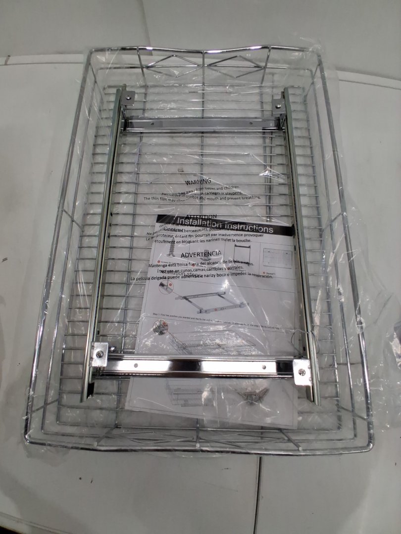 RICHARDS PULL OUT CABINET DRAWER ORGANIZER - HEAVY DUTY SLIDE OUT STORAGE SHELF - 14" X 21" - CHROME FINISH