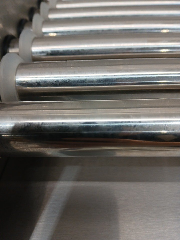 Has a small dent in the back and the rollers have some residue on them Tested for power.
