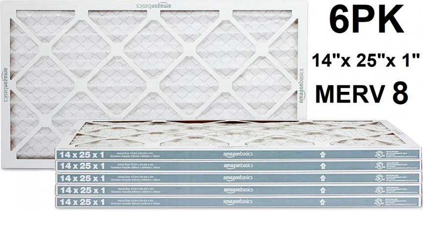 6pk amazon basics replacement ac furnace air filters - 14" x 25" x 1" - merv 8 - white
