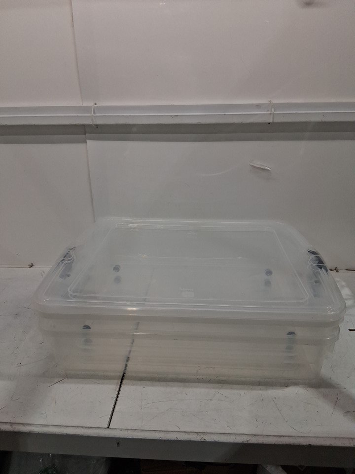 2PK Homz Plastic rollable Stackable underbed Storage Bins with Latching Handles - 66 Quart - Clear/black