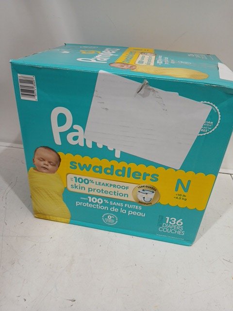 136PK PAMPERS SWADDLERS DIAPERS - NEWBORN SIZE 0