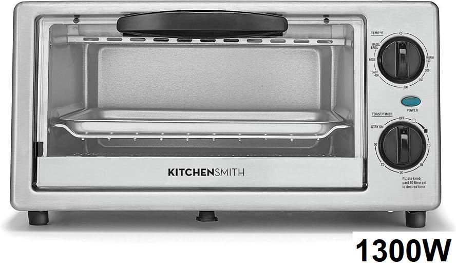 kitchen smith 4 slice toaster oven - 1300w - silver (model: 12074)