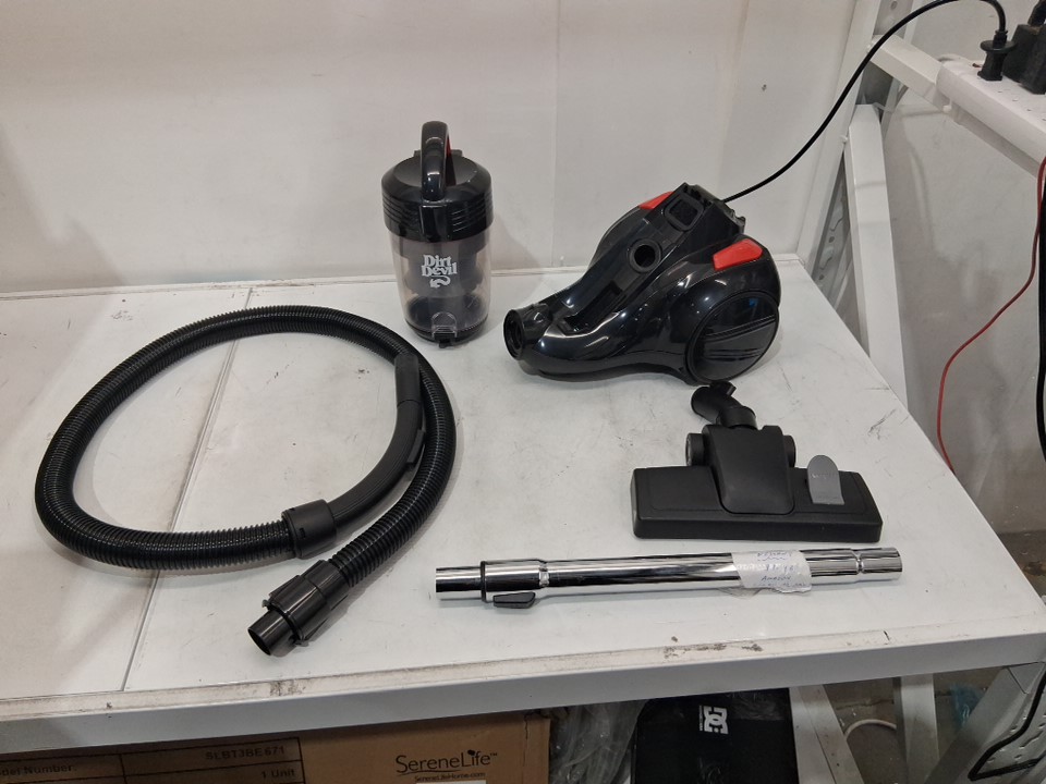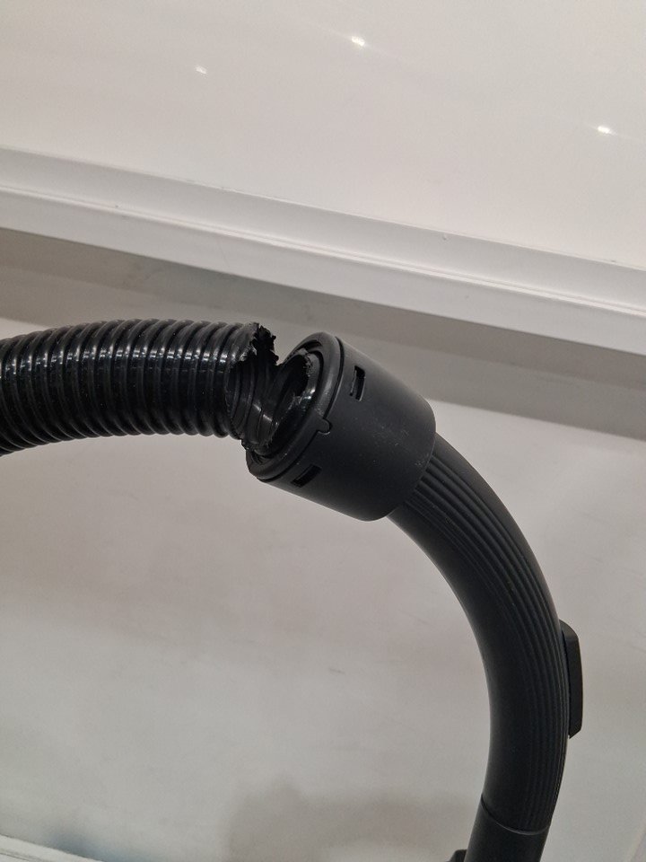 Tested for power and function. Dirt residue and severe damage to vacuum hose indicating previous use (See photos).