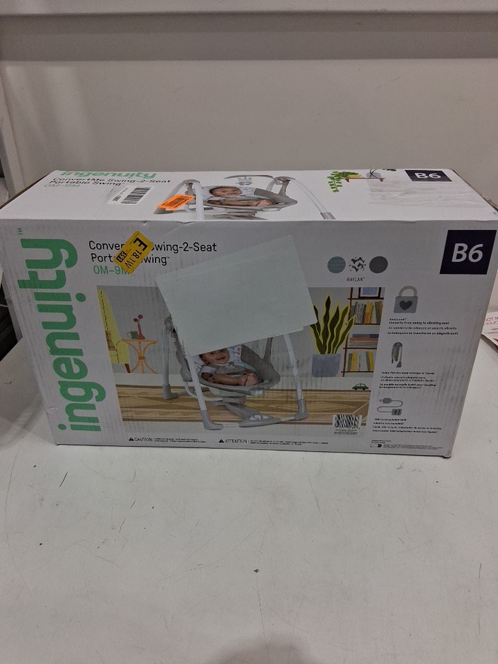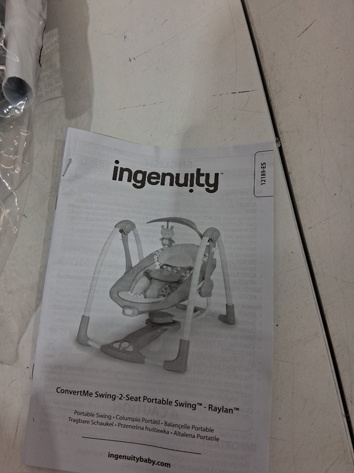 INGENUITY convertme 2-in-1 compact portable plug in automatic baby swing and infant seat - 0 to 9 months - 6lbs to 20lbs - grey (model: 12189-es)