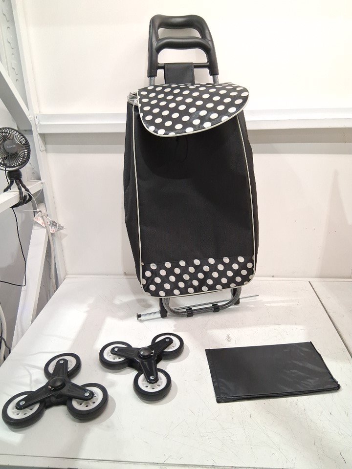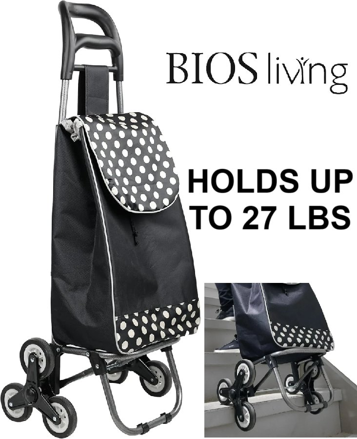 BIOS Living 3 Wheeled Stair Climbing Foldable Shopping Trolley - Holds Up to 27 LBS - Black/Dotted