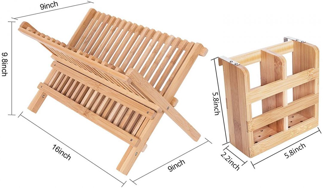 LAWEI Collapsible Bamboo Dish Drying Rack - natural