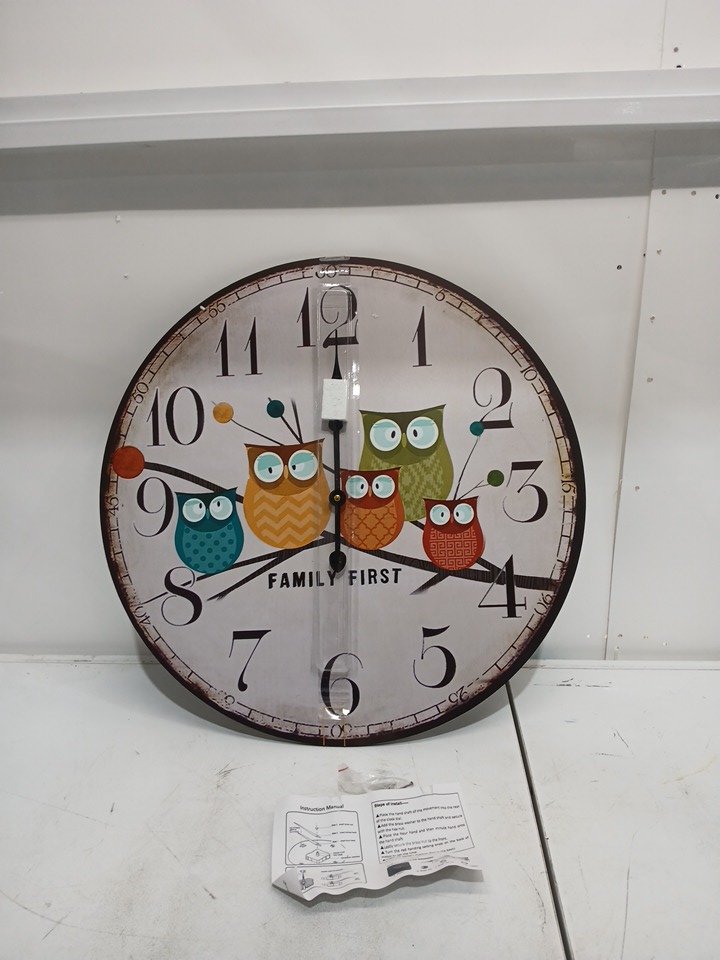 stories.label vintage owl wall clock - 12" (model: art deco owl)