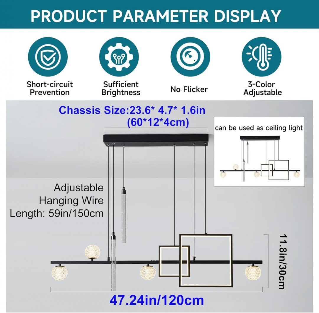 ORANOOR Modern dimmable led pendant chandelier with remote and app control - 47.2" x 59" - 4200LUMENS - 3000K/4500k/6000K - black (model: 8417)