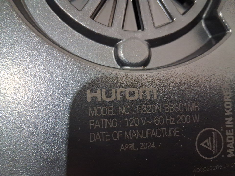 Hurom Ultra Low Pulp Quiet Motor Slow Juicer - 500ml - black (model: h320n)