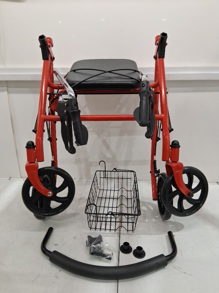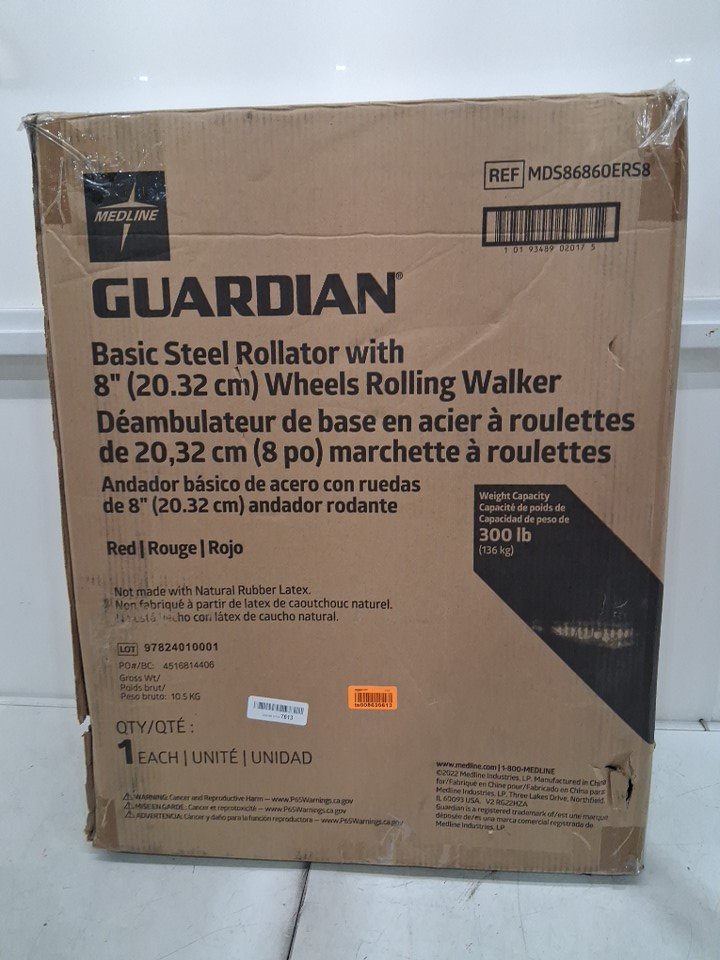MEDLINE GUARDIAN BASIC STEEL ROLLATOR WITH 8" WHEELS ROLLING WALKER - 300LBS CAPACITY - RED (MODEL: MDS86860ERS8)