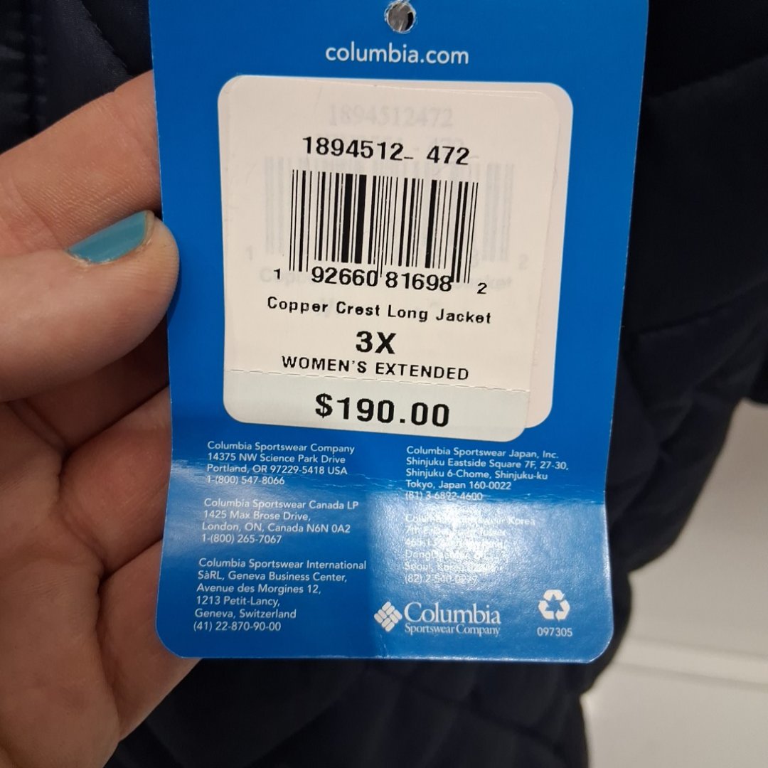 womens Columbia Copper Crest Long Jacket - 3xl - navy blue (style: 1894512-472)