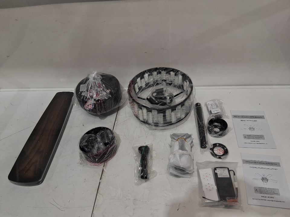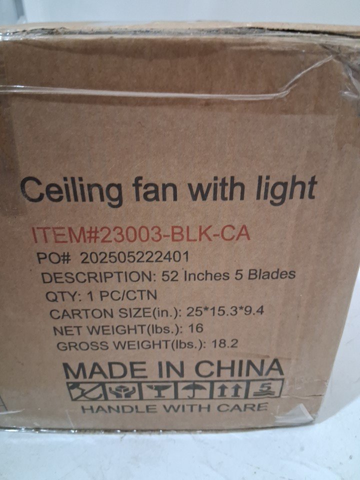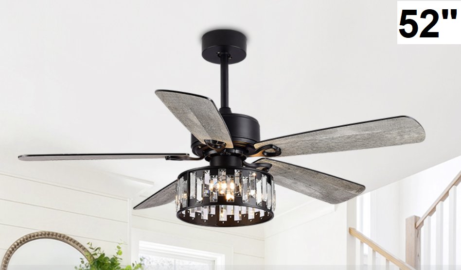 breezary 5 blade rustic ceiling fan with light and remote control - 52" - black/grey (model: 23003-blk)